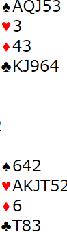 Dette er en fin utgang. Dessverre satt trumfen 5-0, og det ble for vanskelig i praksis å vinne utgangen selv om den kan vinnes "double dummy", dvs. med åpne kort. Svenskene fikk hjem sin 3 hjerter og noterte 6 IMP inn.