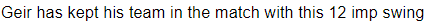 Min gjennomgang av den kampen viser at nordmannens innsats var meget god (som vanlig...), og på sett og vis holdt han lenge laget inne i kampen.