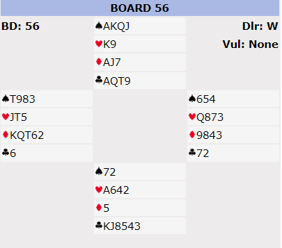 Å notere +1520 ga nesten +10 IMP til N/S i et spill som bør ta mindre enn 10 sekunder å melde og null sekunder å spille. Fint for N/S om de melder syveren selv om det ikke krever noen briljans for å få de poengene, og brutalt for de som sitter Ø/V mot storeslem i dette spillet i en sånn IMP-par turnering. Det var 10 par som meldte 7 kløver. De aller fleste spilte lilleslem, og tro det eller ei, det var flere par i utgang enn i 7NT!