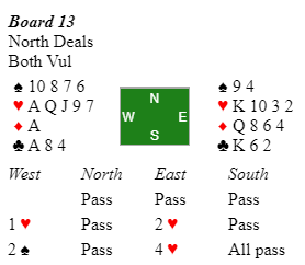Vest var i 4 hjerter nesten over alt, dog etter litt forskjellige meldingsforløp.