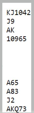 Her spill 15, det første i siste halvrunde kamp 7 mot Kolbotn n1. Knut Molander (N) var giver som Syd og i ugunstig sone. Slik var Molander sin hånd: