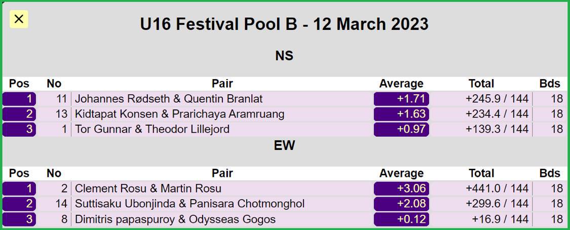 En tastefeil i spill 13 påvirket resultatlisten slik at Dag og Tron ble sammenlagtvinnere, gratulerer så mye. Dessverre rekker jeg ikke å oppdatere HCP-listen da jeg straks er på farten til Kroatia, men det er mulig for hver enkelt å beregne sluttresultatet. Ha en fin Påskecup på Skjærtorsdag kl 1400 på Bøndernes.