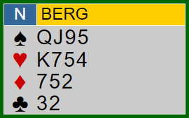 Riktignok har vest meldt spar, men Berg ville ikke spekulere i andre utspill enn spar med så god farge. Og det viste seg å være fornuftig: