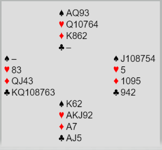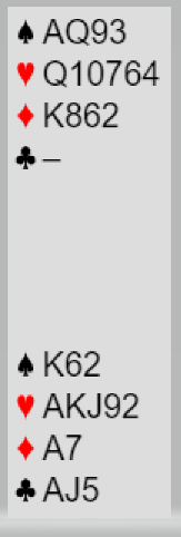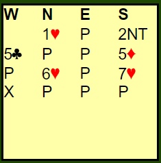 Svein åpnet med 1 spar, Hans passet også og Flemming svarte 2 ruter(game forcing) med følgende: