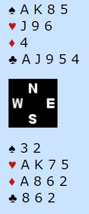 Dette er et læreboksspill. Hvis ruter sitter 4-4 spiller det ikke så mye rolle hva spillefører gjør i ruterfargen, men sitter utspillsfargen 5-3 må spillefører forsøke å kutte forbindelsen mellom øst og vest i fargen. Ruteren må lasjeres to ganger, og håpet er at den som kommer inn (øst i dette tilfellet) har kun tre ruter. Da kan det å bra selv om det må avgis to kløverstikk. Og kløverfargen er fargen spillefører må sette sin lit til.