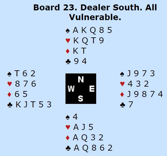 Helgemo – Grude var i 6 hjerter og vant tolv stikk, et resultat som ble kopiert av det italienske Ø/V-paret.
