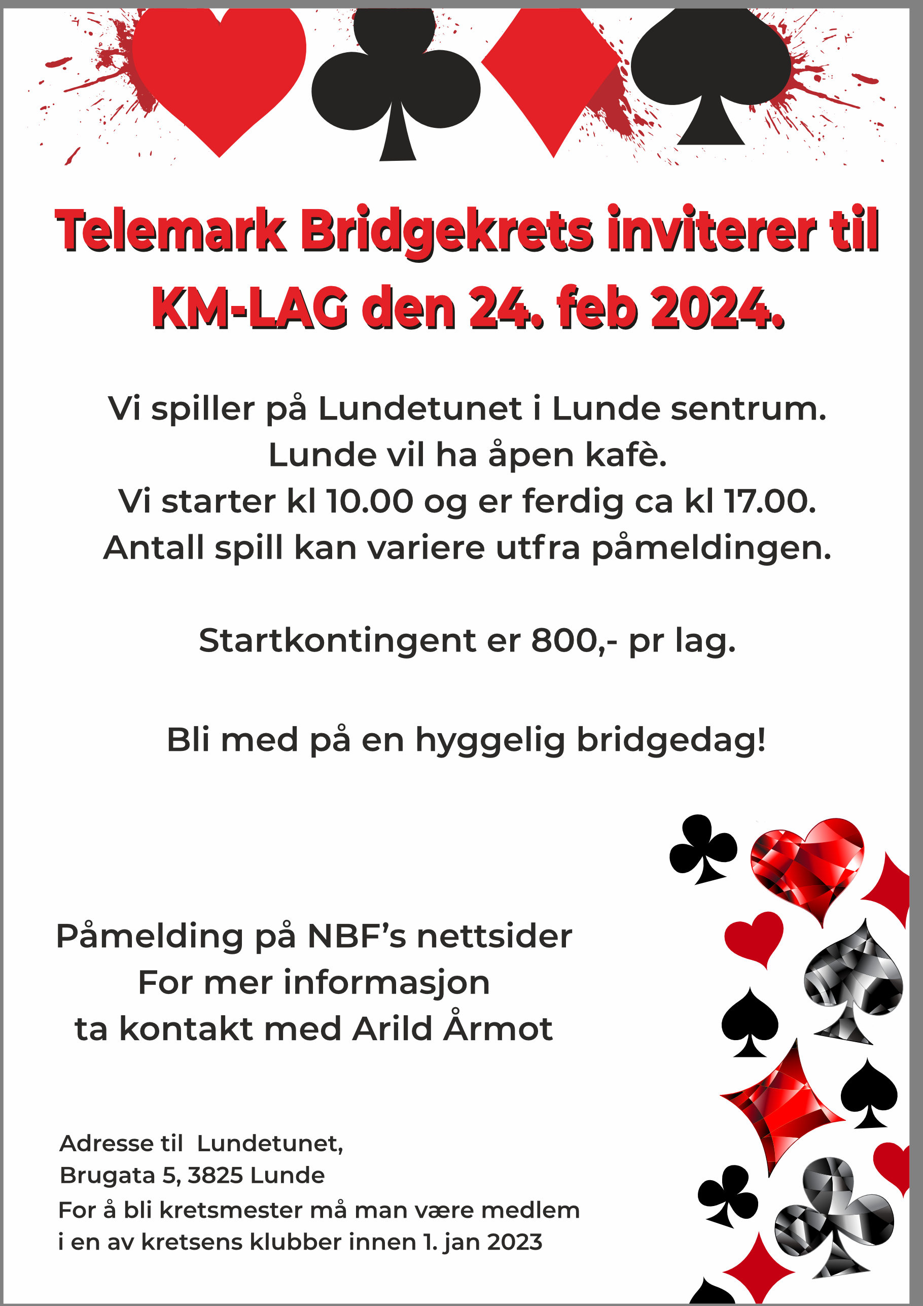 Vi inviterer til KM-LAG 24. februar 2024. Vi spiller på Lundetunet.