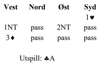 "Merk at det kan vinnes 3NT om ruteren løses for syv stikk. Men bommes ruteren blir det to ruterstikk i stedet for 7 (!), og i så fall blir det nitrist i grandkontrakt."