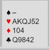 Slik det var stod det tretten stikk i kløverkontrakt. Hjerteren ga fire (!) avkast for rutere hos nord, og dermed kunne syds andre ruter trumfes på den korteste trumfhånden. Syds hånd blir hovedhånd, og der eksisterer det ikke tapere etter hvert,13 stikk og +940.