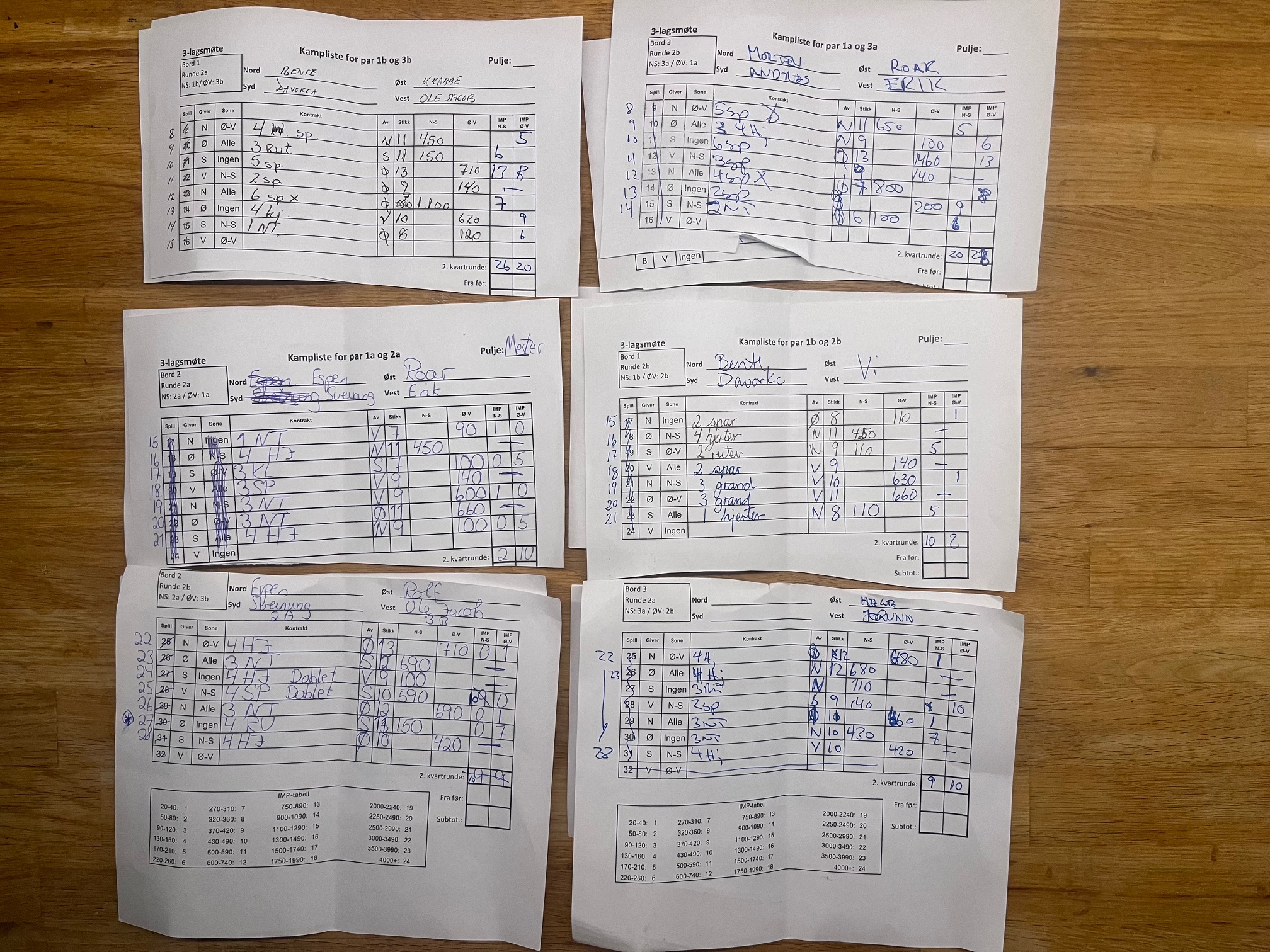 Vi har allerede fortalt at Bergen Akademiske 1 (C.Bakke) gikk videre til finalen i NM for klubblag etter en marginal seier (1 IMP) mot TopBridge 5. Forleden fikk klubben med nok et lag til lagfinalen da Bergen Ak 2 med Svein-Olai og Jim Høyland, Tor Bakke og Magne Eide vant storkampen i 6.runde mot sterke Sunndalsøra BK.