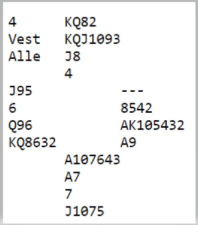 I dette spillet fra runde 2 i U-16 (Norge-Polen) på tirsdag var det Markus Hansen Moe og Ida K. Mathisen som meldte mer optimistisk enn resten av feltet. Og det norske paret lyktes. Først kan du ta stilling til hvordan melde denne hånden: