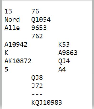 Om man skal være helt ærlig er 7 ruter litt vel hardt, men storslemmen har bra sjanser! Og å se at vests kort mot en 1NT åpning er slemkort er bra vurdert.