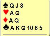 Men se på N/S sine kort. De kan vinne 6 ruter, men det er ikke så lett å melde det. Ø/V var med og forstyrret over alt. Av de 16 lagene spilte seks lag utgang. Fire par var i slem. Ett av dem bommet på trumfarge og spilte 6 kløver med en bet, de tre andre var i 6 ruter og noterte pene +1370. Resten spilte doblede sparkontrakter. Hvor mange stikk er det der?