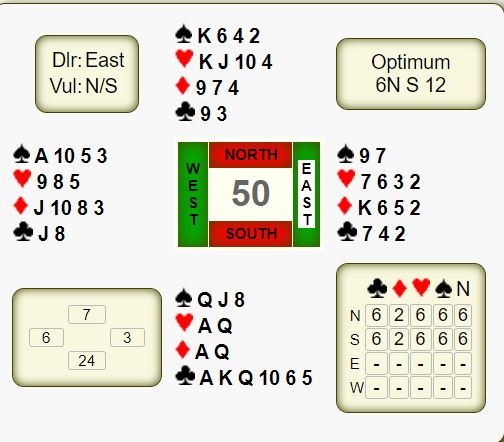 Computeranalysen (double dummy) tilsier at både 6 kløver og 6 ruter kan vinnes N/S, og Ø/V kan klare syv stikk i spar. Men slike analyser stemmer ikke alltid med virkeligheten. Flere steder raknet det i doblet sparkontrakt og det ble kun seks stikk.