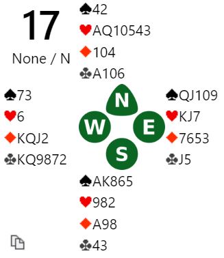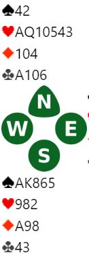 Da nord doblet vests høyning til 4 hjerter var det ikke så rart at syd passet. N/S kan spille kløverkontrakt hvor de har kun tre tapere slik det sitter. Men står 4 hjerter?