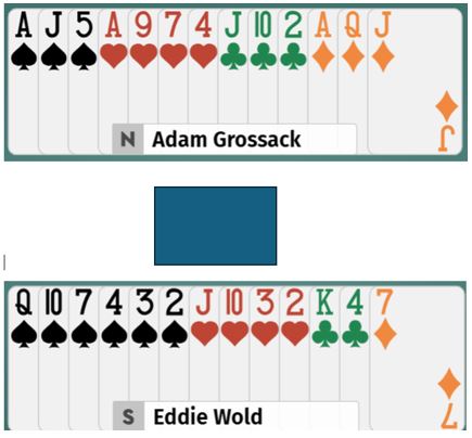 Her er et spill fra det fjerde settet som var perioden vinnerlaget fikk det endelige overtaket i finalen mot lag SHOURIE som vel var de flestes favoritter før finalen. Men de ble knust (godt over 100 IMP).