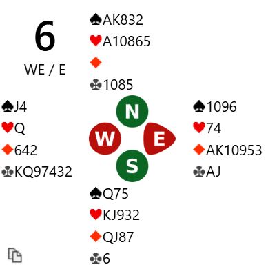 Ved nesten alle bord ble det spilt 4 hjerter som er en grei utgang, avhengig av kløverfinessen gjennom syd som åpnet med 1 ruter stort sett ved alle bord. Så meldt og vunnet +620 kan man ikke regne med å vinne noe på, det er vel alltid et buttspill? For hva kan gå galt for Ø/V her?