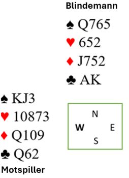 Makker har ikke hjerter knekt, for i så fall ville han lagt det kortet fra Q-J. Men han kan ha hjerter konge. Spillefører har altså enten A-K-J eller A-J-(x) i hjerter.