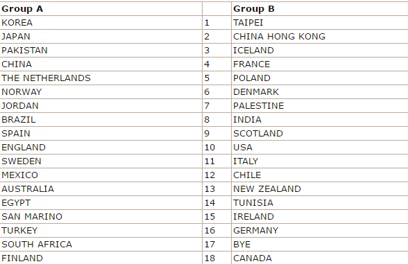 I den første gruppen finner jeg fem A-lag, seks eller 7 lag i B-kategorien, og seks-syv C-lag. I Norges gruppe er det også fem-seks A-lag, først og fremst Polen, USA, England og Monaco. Men B-kategorien er større, for i den gruppen er det kun noen få C-lag. I "min" gruppe kan jeg ikke finne mer enn tre storlag, og det er seks-syv lag som jeg vil kalle B-lag. Så New Zealands gruppe er på papiret svakere. Dermed er det ingen unnskyldning å finne for undertegnede og mine lagkompiser hvis det ikke blir avansement til sluttspillet denne gangen. Hvis vi blir utslått så er det i alle fall ikke pga. uheldig trekning!